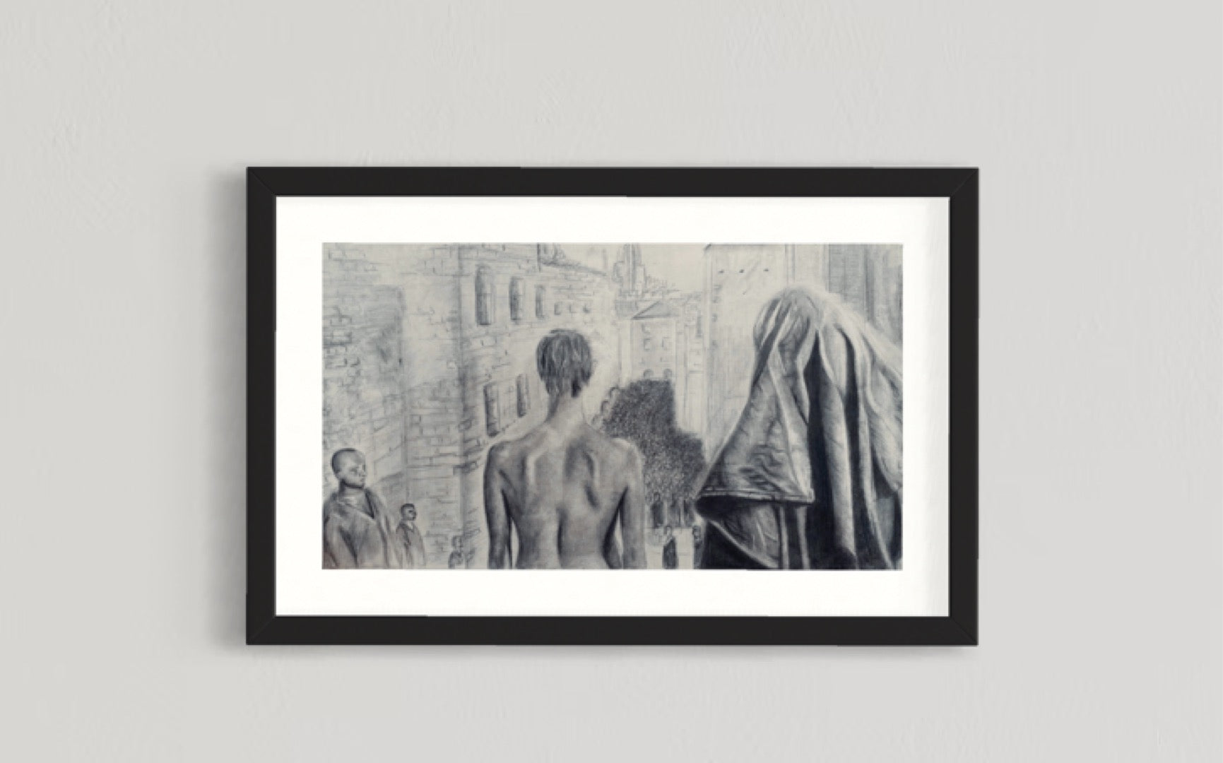 Based off of a scene from Game of Thrones, this scene captured my attention. There is so much build up of anger and revenge waiting to happen from this scene alone, contributing to one of my themes. First of my work to feature clothing. The drawing primarily focuses on the intricate wrinkles in the fabric of the nun’s veil.